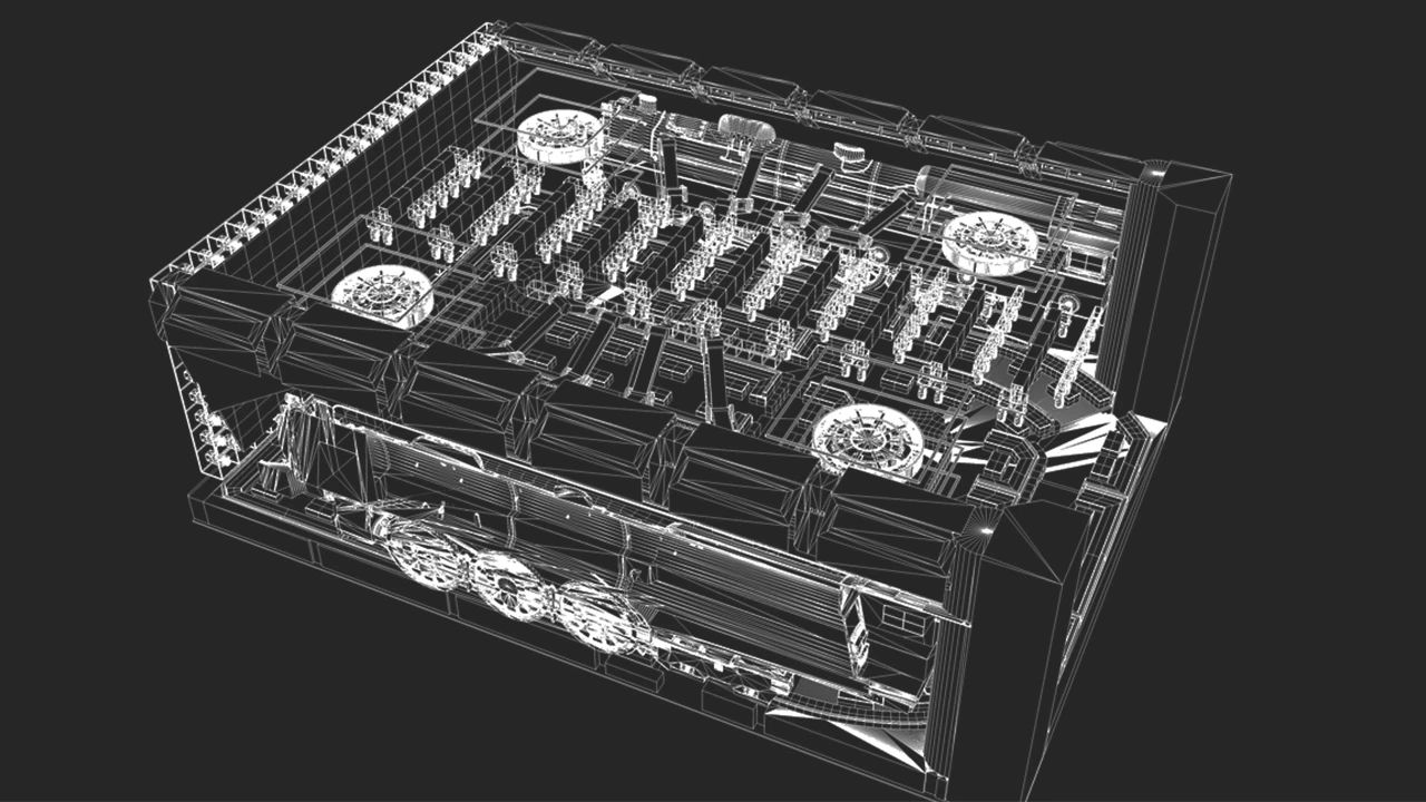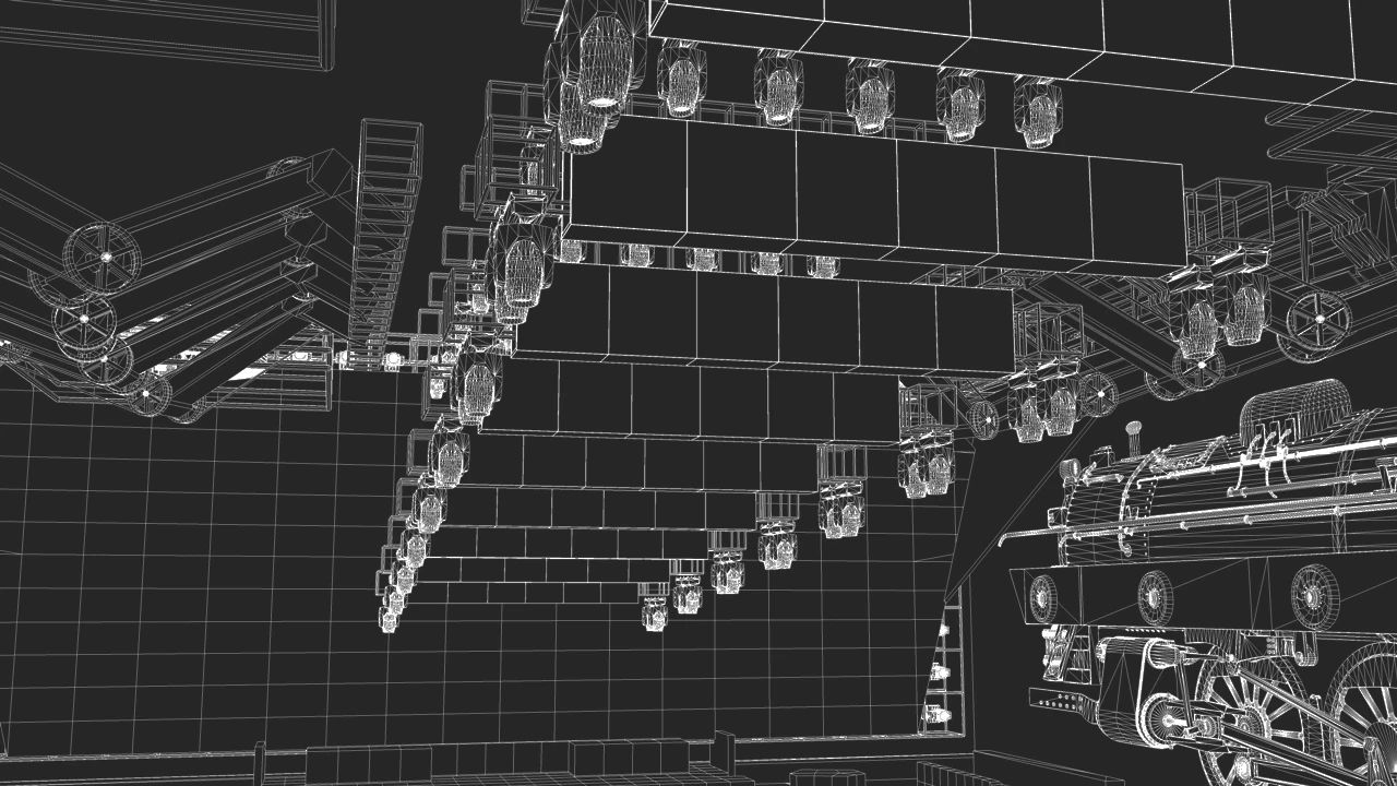 8组悬空系统均采用LED屏幕灯阵的构造。其采用上下升降机动操控,使舞美创意实现多维度的呈现。空中舞美机械,使得舞美视觉打破空间上的限制,在得到横向平面伸展的同时,亦得到纵向延伸,形成全场视觉的高低呼应,打造沉浸式舞美体验。