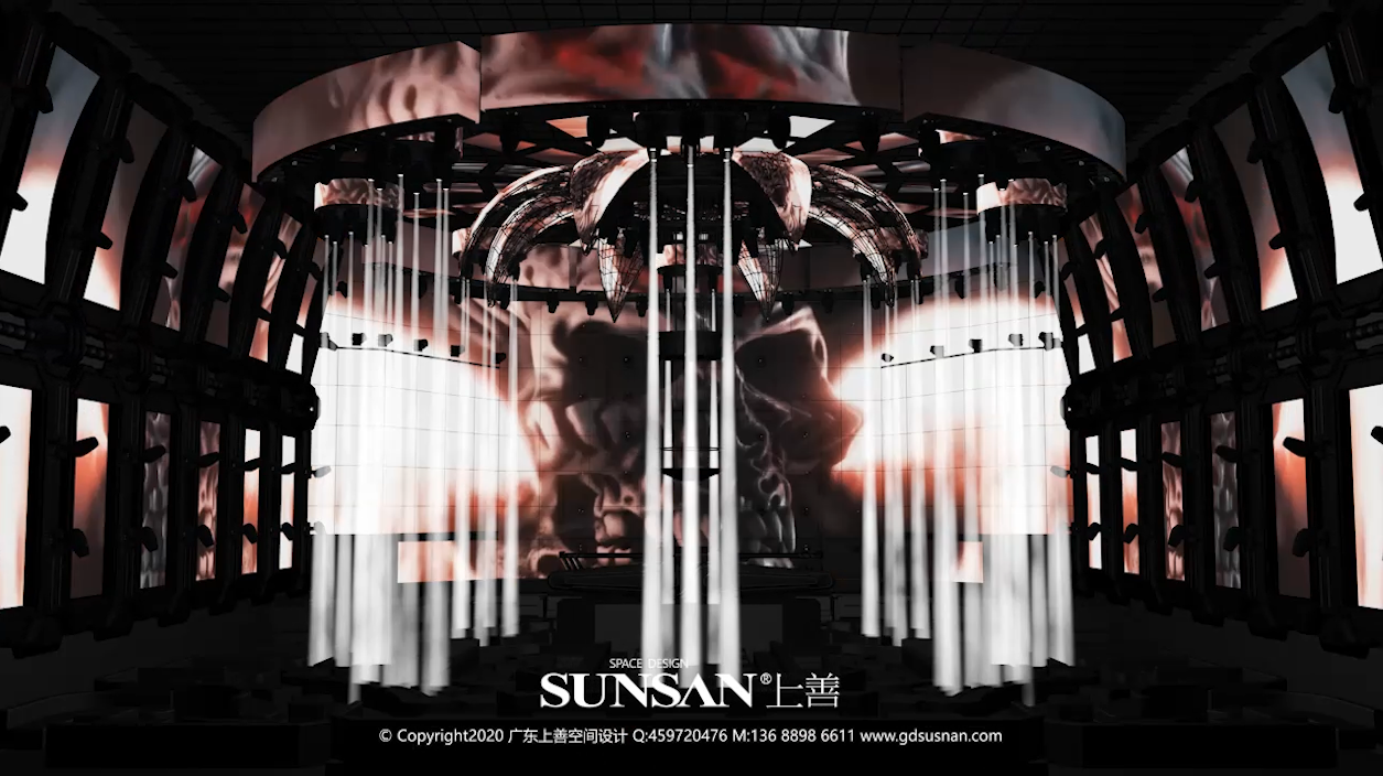 When the central core is charged to the limit, the dynamic "star glow" mode is turned on. The whole core sphere is divided into eight parts, and the internal LED light is surging with undercurrent. Hidden in the hemispherical lifting DJ stage then dropped, with the DJ's passionate performance, so that the atmosphere of the scene to the highest point. With the scattering of transparent screen near the sphere floating, more rich visual changes. The outer ring has 6 arc-shaped lamp stands, each equipped with several beam lights and high-definition LED screen, reflecting each other with the 8-circle extension "planet" device.