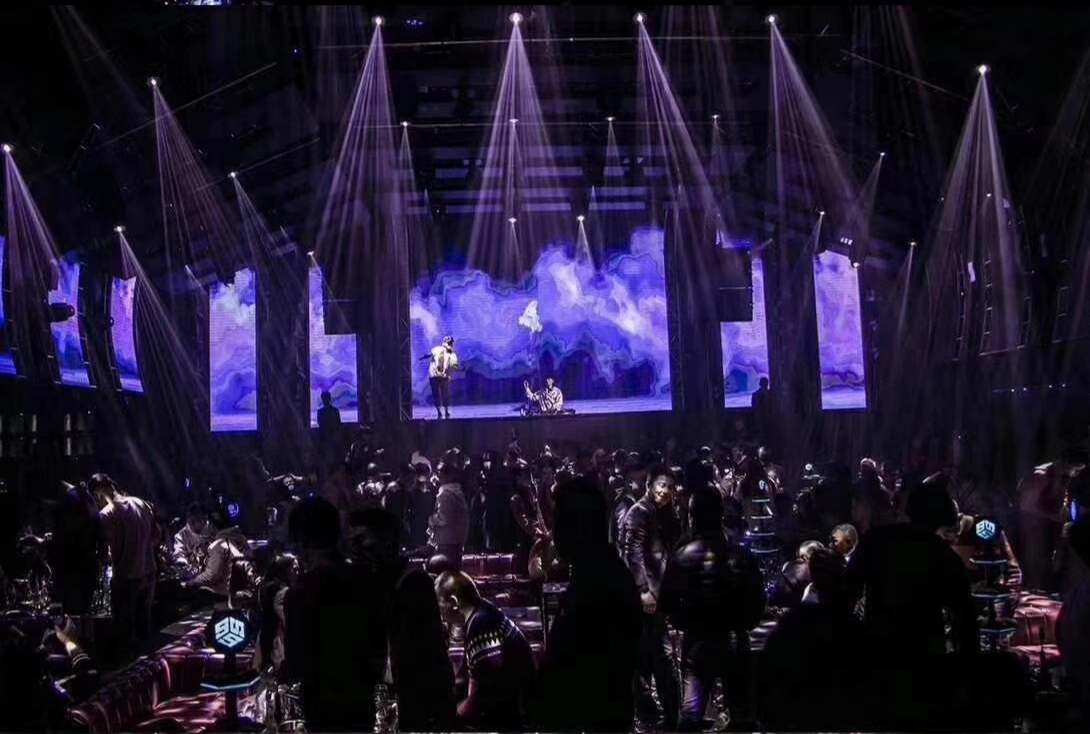 The space of the hall is wide and compact, which brings personalized entertainment. Point, line, surface gather and discrete form different space, the clever use of light bar to achieve the broken situation of space. The independent rise and fall lighting of matrix style, the symmetry and overlap between light and shadow, and the rhythm of cadence and cadence are very impressive. Intelligent mechanical LED screen, multi-dimensional visual space. The creative construction of entertainment and technology reveals a strong flavor of the future.